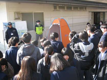 また、簡易トイレやマンホールトイレ、パーテンションテント、段ボールベッド、簡易ベッドを実際に使用し、避難所生活を想定した体験学習を行いました。限られた環境の中で生活する大変さや工夫の必要性を、体験を通して実感することができました。