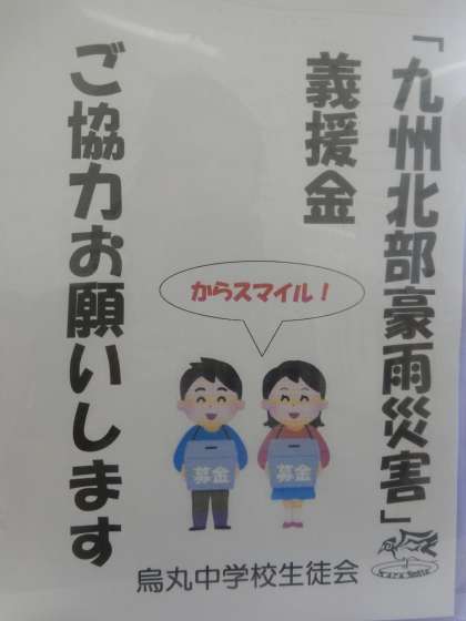 九州北部豪雨災害義援金 公開日 2017/07/21 更新日 2017/07/21 学校の様子 7月18日(火)〜20日(木)の3日間 生徒会が中心となり九州北部豪雨災害の募金活動を行いました。集まった募金額は¥36877です。皆さん本当にありがとうございました。皆さんの暖かい心が伝わると良いですね。