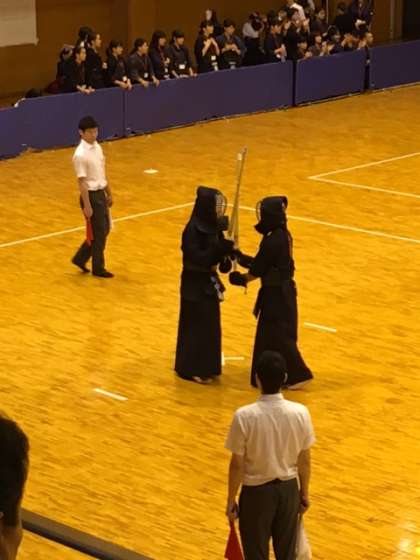 夏季大会(剣道) 公開日 2017/07/28 更新日 2017/07/28 部活動2017 7月28日(金) 剣道の夏季大会 京都府下大会が武道センターで行われました。市内大会で3位になった Nくん。この日、1回戦は勝利したものの、2回戦は惜敗しました。前半は優勢だっただけに残念です。でも、よく頑張りました。京都府下大会ベスト16は立派です。