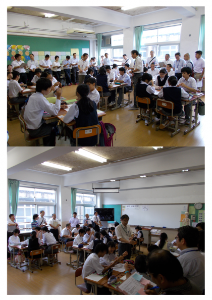 9月7日(木)北・上京支部合同授業研修会が行われました。北区、上京区の中学校で教科ごとに行う先生のための授業参観です。烏丸中学校では理科の授業参観が行われ、北区、上京区の中学校の理科の先生がたくさん来校されました。授業の交流を通し、少しでも授業力の向上になればと、先生方も一生懸命勉強されていました。代表で残ってくれた2年2組の生徒たちも頑張って学習に取り組んでくれました。