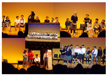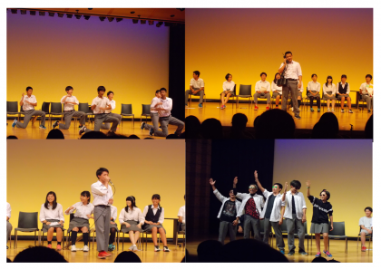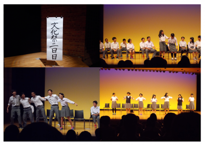9月29日(金) 文化祭2日目です。今日は、「リーダー講習会報告」・1年生発表「文化財と防災」・3年生学年劇「今日は何の日?」・2年生舞台パフォーマンス・職員合唱です。写真は、3年生学年劇の様子です。見に来られた保護者の方々からは、とてもおもしろかったと好評でした。