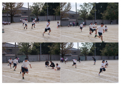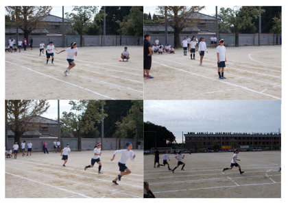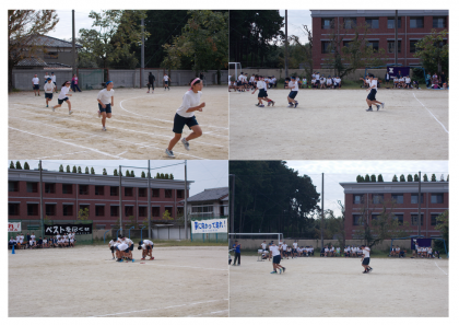 1、2、3年の100m走と2人3脚の様子です。生徒数は少ないですが、みんな一生懸命走っています。