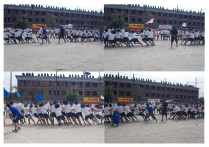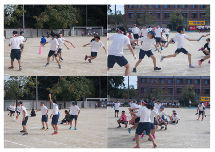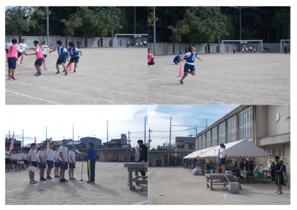 体育祭6 公開日 2017/10/10 更新日 2017/10/10 学校の様子 綱引きと色別対抗リレーの様子です。いよいよ体育祭最後のメイン競技です。リレーでは同じ色のチームへの応援でグランドは、大盛り上がりです。表彰式では、勝っても負けても、お互いが労をねぎらいました。素晴らしい体育祭でした。全員が燃え尽きたようです。みなさんお疲れ様でした。