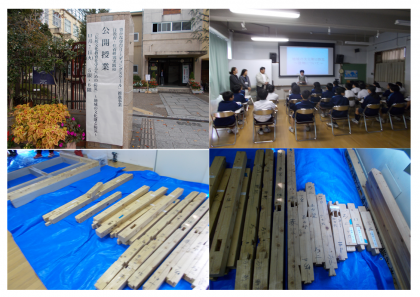11月7日(火)5、6限 1年生は総合の時間に「伝統文化を守るための防災教育」として、京町屋を含む「昔の家」と「今の家」の構造の違いを知り、住まいの安全性について考えました。講師の先生をお招きして、実際に組立体験や耐震補強の効果の実験を行いました。公開授業だったのでたくさんの参観者がありましたが、みんな普段通り、楽しく学習していました。