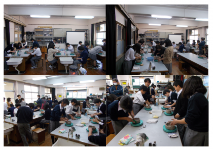 2月14日(水)3,4限 1年生陶芸教室の続きです。伝統文化教育としての取組の一つです。みんな黙々と作業をしています。授業では見ることのできない新たな一面を発見することができました。焼き上がりの完成品が楽しみです。