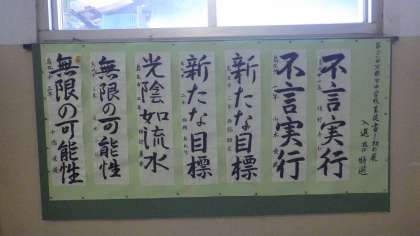 生徒作品 公開日 2018/02/21 更新日 2018/02/21 学校の様子 烏丸中学校の北校舎の廊下には、教科のさまざまな作品が展示されています。1年生、2年生の作品は美術の授業でのものです。最後は、書き初め展の入選作品です。ぜひ一度、作品を見に来校下さい。