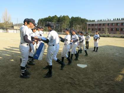 3月17日(土) 野球部のOB戦が行われました。2日前に卒業した3年生と在校生との交流試合。部員数の少ない野球部ですが、先輩後輩問わず、みんな仲良く団結力のあるチームでした。3年生のみんな、卒業しても烏丸中野球部員ですよ。