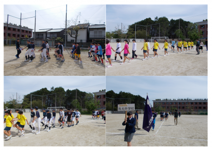 春体行進練習 公開日 2018/04/26 更新日 2018/04/26 学校の様子 4月26日(木)5限に春体激励会を各教室のテレビにて行い、放課後に開会式に向けての行進練習を行いました。4月29日(日)第60回春体開会式には代表生徒約70人が参加します。西京極運動公園陸上競技場では学校の代表として、しっかりと元気よく行進してきて下さい。また、春季総合体育大会での活躍を期待しています。烏丸中学校全教職員が応援しています。