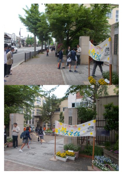 あいさつ運動 公開日 2018/05/02 更新日 2018/05/02 学校の様子 5月2日(金) 本日より今年度の朝のあいさつ運動が始まりました。朝から曇り空のお天気でしたが、本日当番の執行部の人たちは元気に挨拶してくれました。朝から晴れ晴れした気持ちになりました。