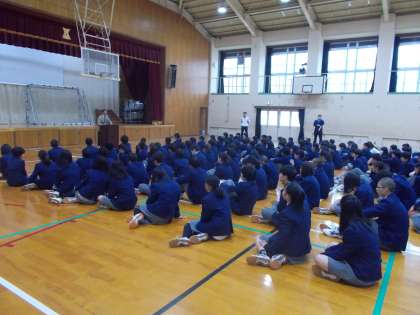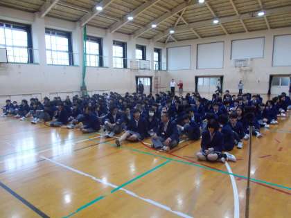 憲法l講話 公開日 2018/05/02 更新日 2018/05/02 学校の様子 5月2日(水)6限 体育館にて憲法講話が行われました。3日の憲法記念日にちなんで5月は憲法月間となることから、全校生徒を集めて、学校長より日本国憲法についてのお話がありました。内容は、日本国憲法の大きな3つの柱である「国民主権」「平和主義」「基本的人権の尊重」を取り上げ、中でも「基本的人権の尊重」に焦点をあて、わかりやすく説明がありました。生徒たちも真剣な表情で、校長先生のお話に耳を傾けていました。