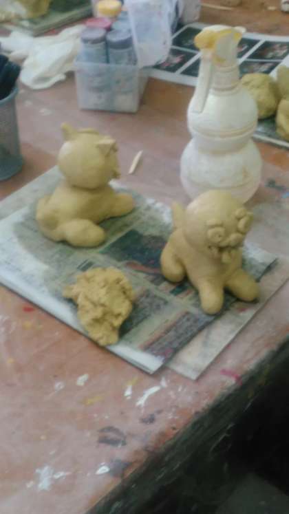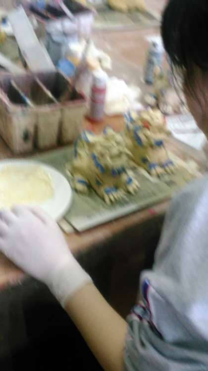シーサーづくりです。そろそろ色塗りの段階に入りました。完成まであと一息です。