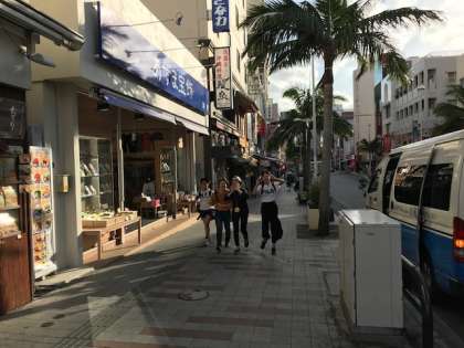 体験学習が終了し、バスで那覇へ移動しました。その後、国際通りを自主研修しています。