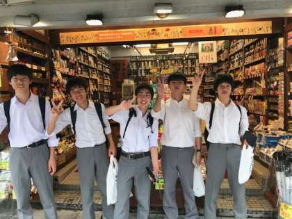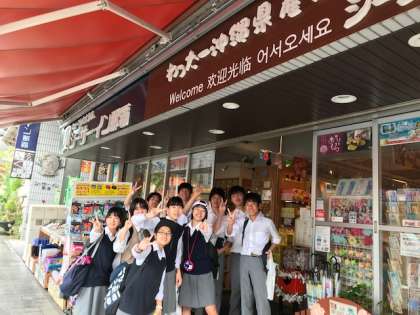国際通りを自主研修しています。残念ながら天気は雨ですが、とても楽しい時間を過ごしています。