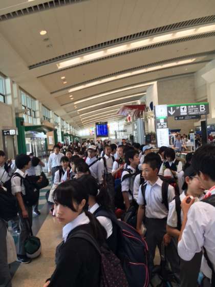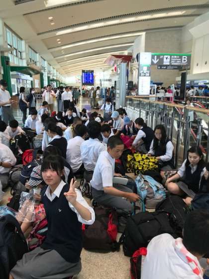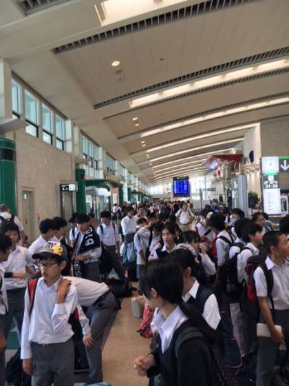 那覇空港に到着しました。空港はすごく混雑しています。