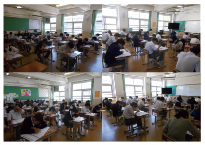 第1回定期テスト1 公開日 2018/05/24 更新日 2018/05/24 学校の様子 5月24日(木) 第1回定期テスト1日目です。みんな真剣に取り組んでいます。1年生にとっては初めてのテスト、ゆっくり落ち着いてよく読んで、焦らず最後までしっかり頑張りましょう。