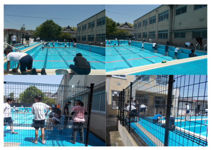 プール清掃 公開日 2018/05/28 更新日 2018/05/28 学校の様子 5月25日(金)定期テスト後の午後、プール清掃が行われました。野球部、サッカー部、男子バスケット部の生徒が暑い中頑張ってくれました。本当にありがとう、奉仕の心ですね。