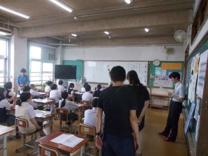 5月29日(火)小学校の先生が中学1年生の授業参観に来られました。2ヶ月前までは小学生だった君たちの、成長した姿を見に来られたのです。少し緊張した様子の1年生でしたが、立派に成長した姿を見せられたのでしょうか。