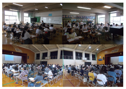 6月9日(土)休日参観が行われました。昨日の雨も朝方にはあがり、たくさんの方々に来校して頂きました。本校の教育活動について、広く理解して頂く良いきっかけとなればと思います。1,2年生は3限まで授業、3年生は3限に進路説明会を行いました。その後は、PTA総会、教育課程説明会、部活動保護者会と午前中は盛りだくさんな内容でした。午後は部活動見学会と続きます。また、PTA主催で制服のリサイクルをいきいき交流ルームで開催していました。