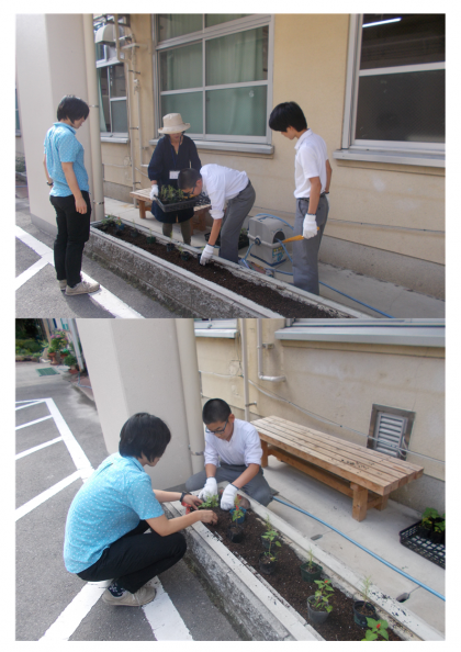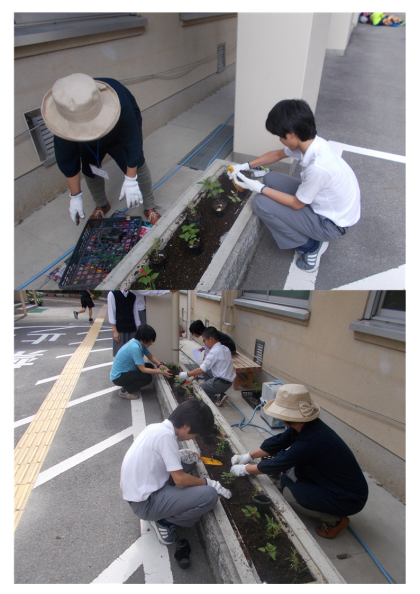 いつも校内を花で美しく整備して頂いている、地域ボランティアの方、本当にありがとうございます。今日は、花の植えかえ作業に来て下さいました。この日は、3年生の男子2名がお手伝いにきてくれました。奉仕の心ですね、ありがとう。一人一人が、烏丸中学校を少しでも美しくするために、何かできればいいですね。