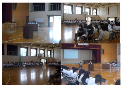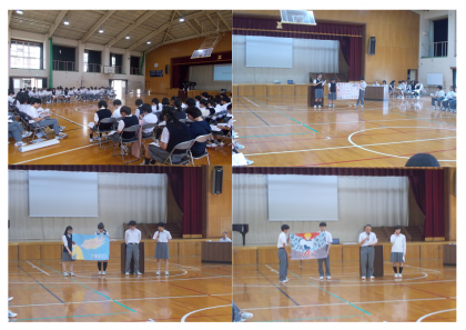 6月14日(木)5,6限 生徒総会が行われました。生徒会長のあいさつから始まり、生徒会目標、活動方針、学級目標発表など盛りだくさんな内容でした。先輩たちがしっかりと司会進行する姿に、後輩たちはあこがれをもったようです。この素晴らしい伝統を今後も引き継いで下さい。