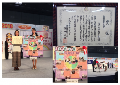 12月8日(土) みやこめっせ第3展示場にて第21回京都市PTAフェスティバルが行われました。烏丸中学校PTAは、毎年行われる壁しんぶんコンテストにおいて、なんと京都市教育長賞を受賞いたしました。広報委員さんを中心に、長い期間、壁新聞の作成に尽力頂きました。本当にありがとうございました。当日、フェスティバルや表彰式にご参加して下さったPTA本部の皆様、お疲れ様でした、ありがとうございました、そしておめでとうございます。