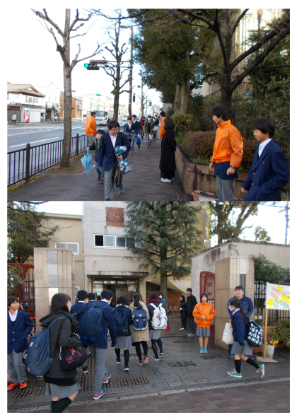 2月4日(月)本日より1週間、2月の朝のあいさつ運動が行われます。今朝は、暖かい朝となりました。3年生はいよいよ受験を迎えました。今日は、滋賀県の私立高校の入試です。週末には京都市内の私立高校の入試が行われます。3年生の皆さん、体調管理には十分注意し、ベストを尽くして下さい。期待しています。
