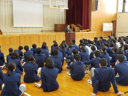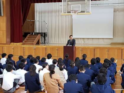 本日の4限は 全校集会にて
