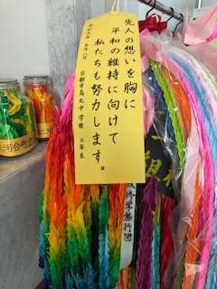千羽鶴・・・ 先人の想いを胸に 平和の維持に向けて 私たちも努力します。 京都市立烏丸中学校 三年生