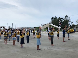 さすが沖縄 ハイサイおじさんの軽快な音楽に乗りながらの準備体操で