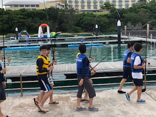 ドルフィンガイドツアー ⇒ 紅型染め体験 ⇒ サンゴ風鈴作りです。