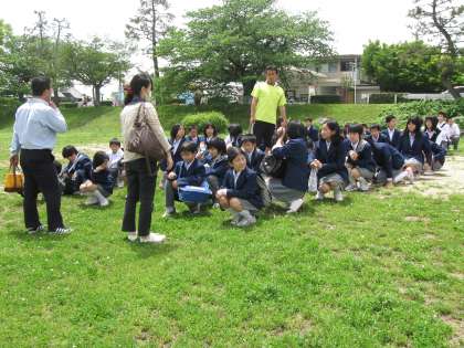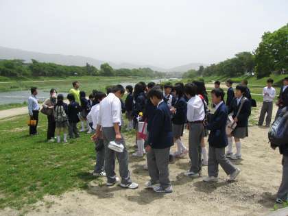 本日1年生は総合学習で、お昼に賀茂川に行きました。
