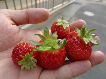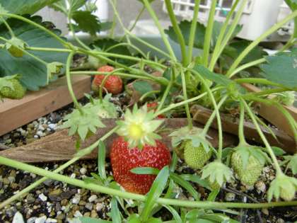 なんと、今日見てみると、イチゴが4粒できていました!!!