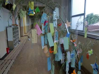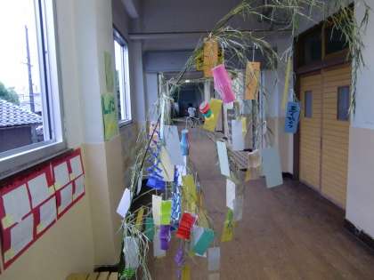 烏丸では数日前から校内に笹を飾り、短冊や飾りをつけました。