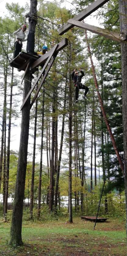 アスレチック体験は 更なる難関へ… ますます高くなってきました。