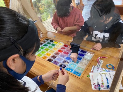 とんぼ玉の ひもを編んでます。 今2個目を制作中です。