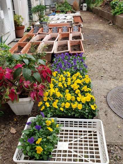 園芸ボランティアさんが プランターや堆肥・日向土 花の苗を準備して下さりました。