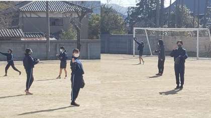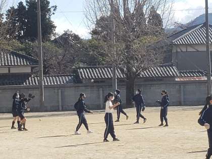 1年生女子の体育 公開日 2021/02/09 更新日 2021/02/09 学校の様子 本日10時のグランドでは 1年生女子の体育が行われていました。 ソフトボールの授業で 二人一組でキャッチボール練習です。 普段あまりすることない種目でしたが 上手くグローブを使って ボールをキャッチしています。 この時間は天気に恵まれて 太陽も顔を出しました。 元気な1年生の活動する姿は キラキラ輝いていました。