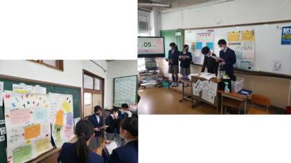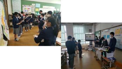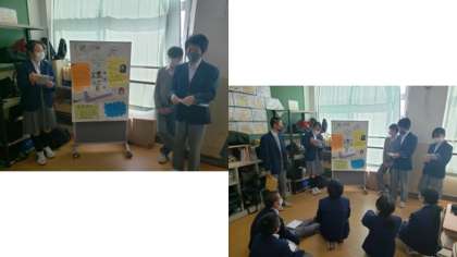 1年生の発表 公開日 2021/02/12 更新日 2021/02/12 学校の様子 本日は 1年生が「京都学」として 学び・調べ・まとめた 学習の成果を発表しました。 先日の2年生と同様に ポスターセッション形式で 「発表者側」と「聴き手側」に 分かれて発表をしていきます。 1年生の発表は 堂々としていて 調べ まとめた内容はもちろん プレゼンテーション力の高さに 驚かされました。 たくさんの先生が 1年生の発表を 感心しながら観ていました。