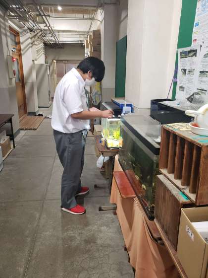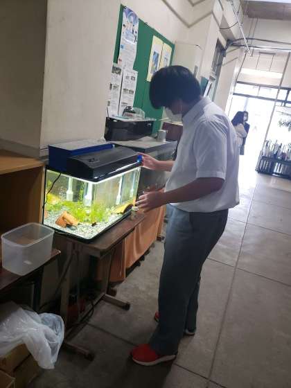 職員室前の魚たちに