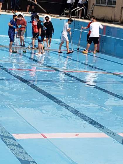 さあ あと少し プールの水が空を映し出しました。 生徒の皆さん 本当にありがとうございました。