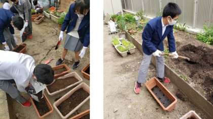 共に活動する美化委員会の苗植えは