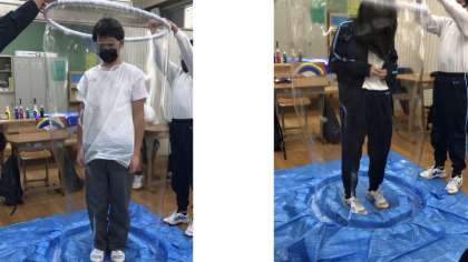 巨大シャボン玉を作りました。