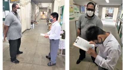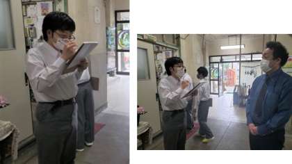 丁寧にインタビューをしています。