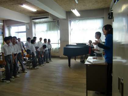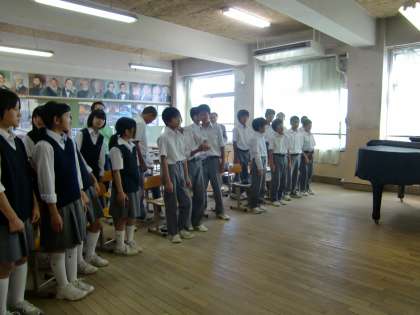 本日の総合では1年生は合唱の練習に励んでいます。