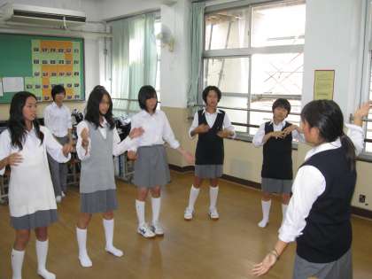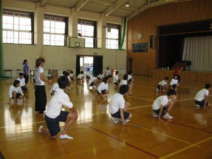 ダンスの方は、リーダーの生徒がみんなに教えながら、がんばっています。