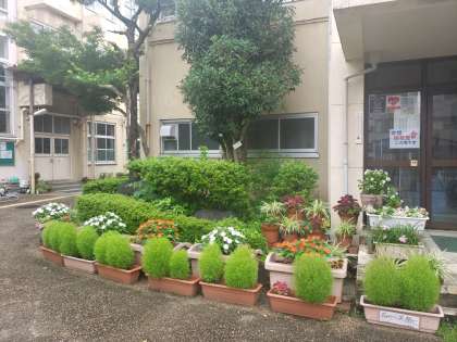 校門前の花壇は