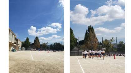 青い空の下で 公開日 2021/10/05 更新日 2021/10/05 学校の様子 3.4時間目 2年生が体育祭の練習をしました。 青い空の下で 生徒の皆さんの笑顔が 弾けていました。 強い日差しに 気温も上昇してきたので 短時間で集中して練習を行いました。