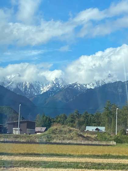 生徒の皆さんを 乗せたバスから 北アルプスが見えてきました! 「美しい!!」