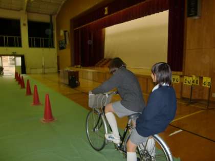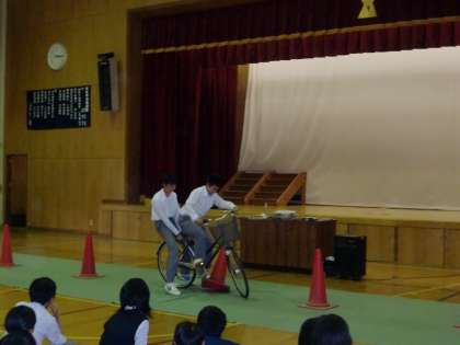二人乗りや携帯を使いながらの余所見運転の危険性を教わりました。