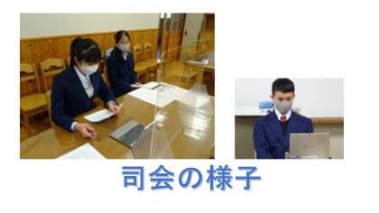 烏丸中学校の代表生徒は,リモート会議の難しさがある中,